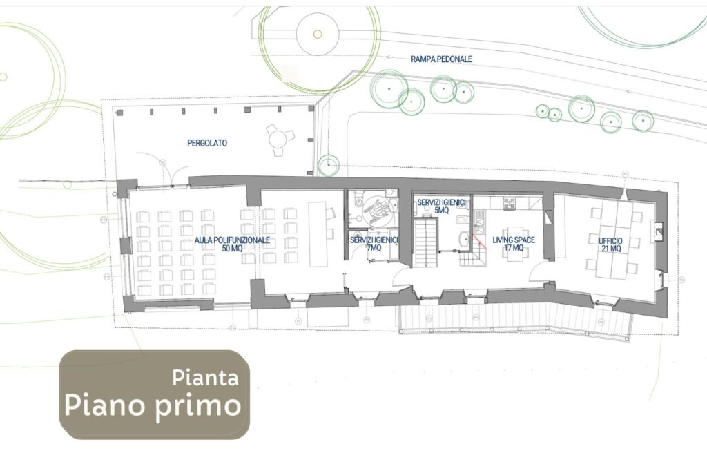 Lo spazio sarร completamente accessibile a persone con disabilitร e passeggini, realizzato per quanto possibile con materiali naturali ed ecologici, e autosufficiente dal punto di vista energetico, grazie un complesso progetto con impianto fotovoltaico e solare termico.