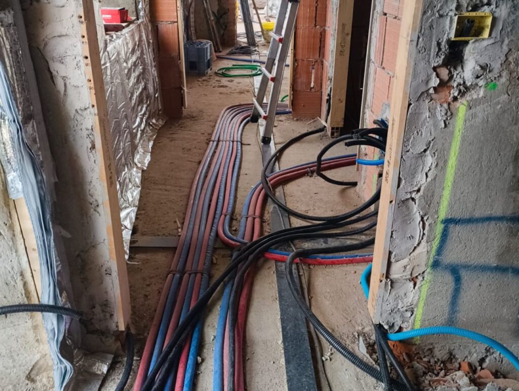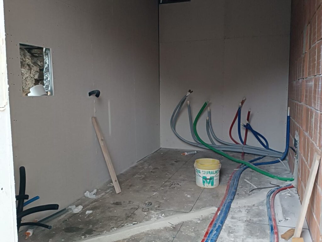 - ultimato la posa dellโ impianto idrosanitario e posato le condotte passacavi per lโ impianto elettrico,