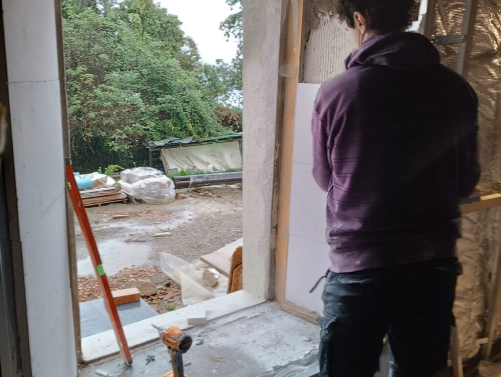 - posato lโisolamento interno termo riflettente, la seconda sottostruttura e iniziato la posa delle lastre per contro pareti interne, che ci permetterร di ridurre la dispersione di calore della cascina