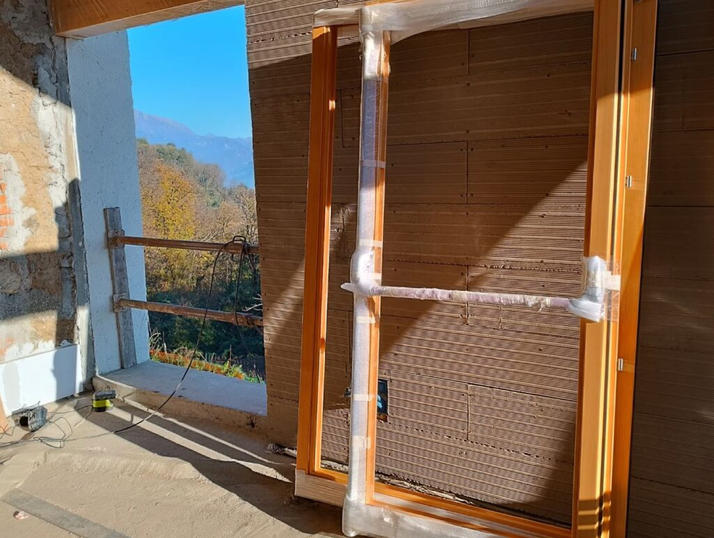 – completato lโisolamento interno con la posa delle lastre in argilla e fibre vegetali, utilizzate in bioedilizia, utili per aumentare lโinerzia termica e regolare lโumiditร degli ambienti;