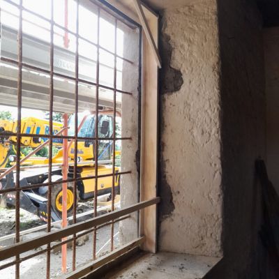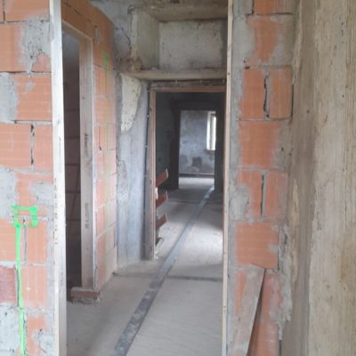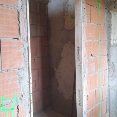 Abbiamo terminato la posa dei falsi telai di porte e finestre, la ripresa degli intonaci esterni e la posa dei tavolati interni.