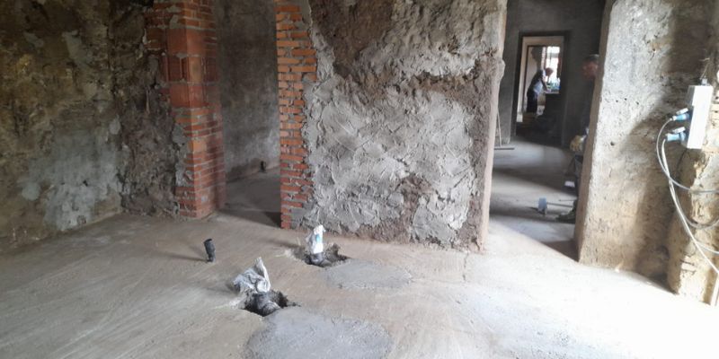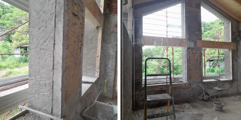 Conclusa anche la modifica e la nuova apertura dei vani di porte e finestre, mentre sono iniziati i lavori di ripristino degli intonaci delle facciate esterne.
