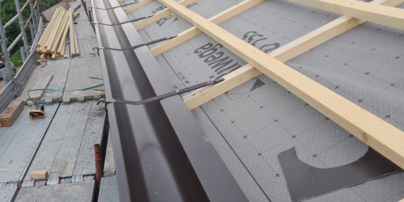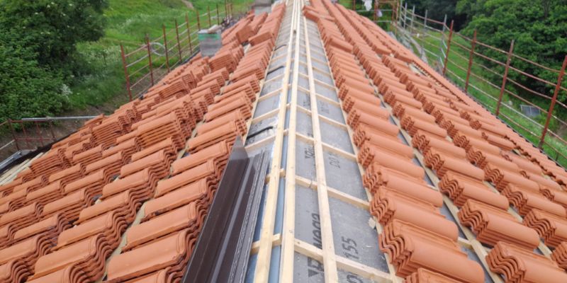 Nellโultimo mese gli operai hanno finito di montare la lattoneria del tetto e la posa del manto di copertura.