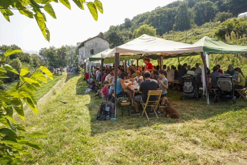 Nelle lunghe tavolate sempre pronte ad accogliere buon cibo, ci si potrร  trovare fianco a fianco a sorpresa con una persona nuova, riscoprendo la meraviglia e la gioia di un incontro inaspettato, davanti a un piatto di polenta e un calice di Barbera.