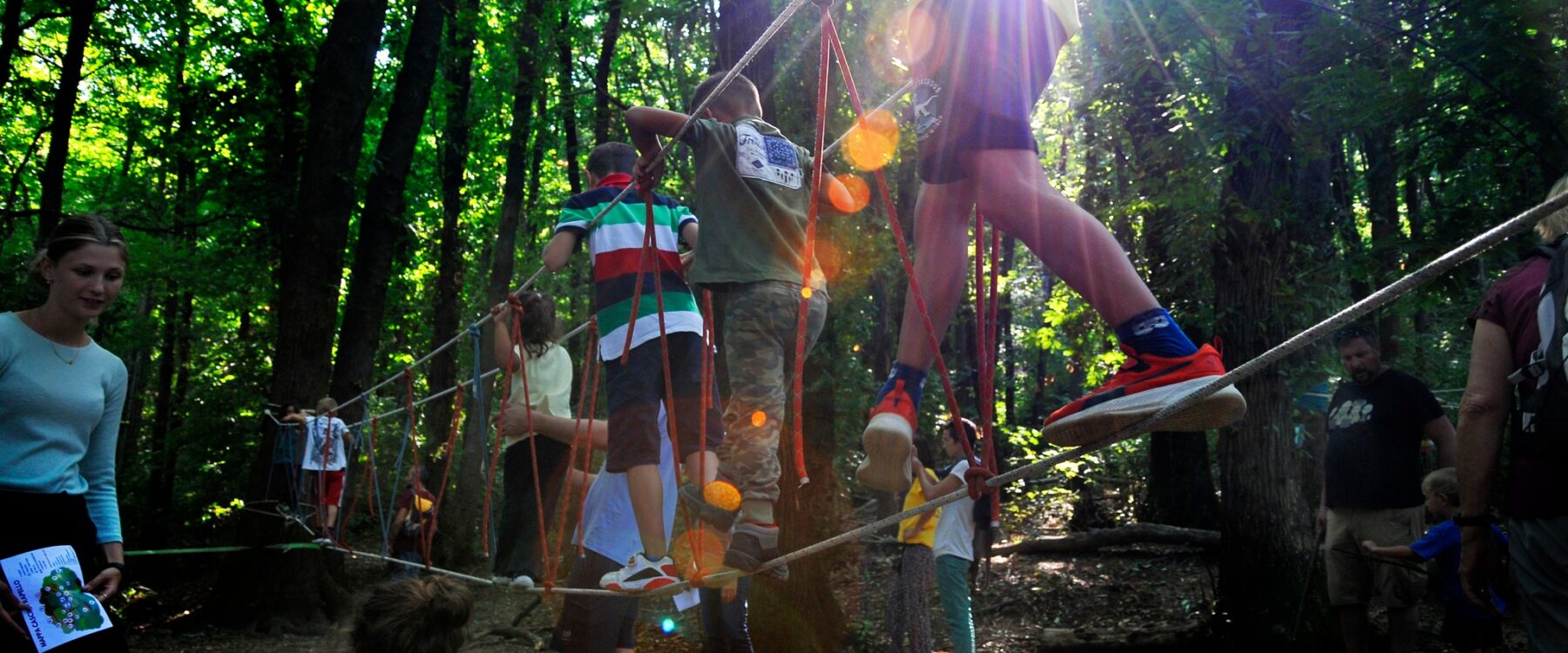 - Giochi di cooperazione e di fiducia grazie anche allโutilizzo di una slackline e di un ponte tibetano