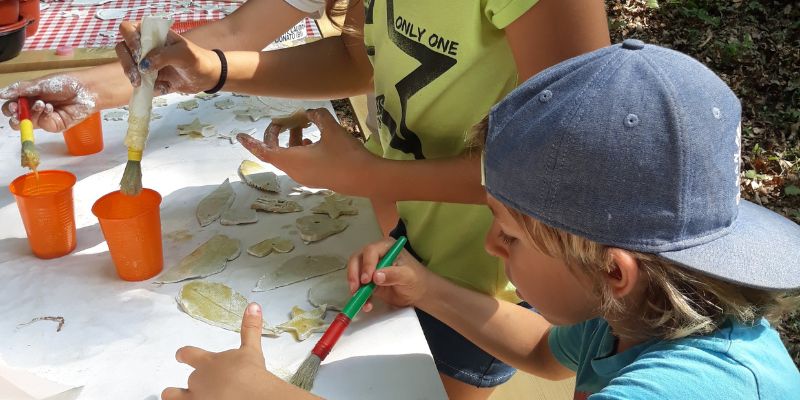 - Creazione collettiva di unโopera dโarte con materiali naturali e lโutilizzo di argilla, per sperimentare la pazienza della ricerca e della manipolazione verso un risultato non sempre visibile fin dallโinizio